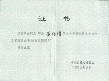 鑒于我公司總經理虞培清高工在齒輪工程領域所做出的貢獻,中國齒輪專業協會理事會特吸收其為“中國齒輪專業協會專家委員會委員”。