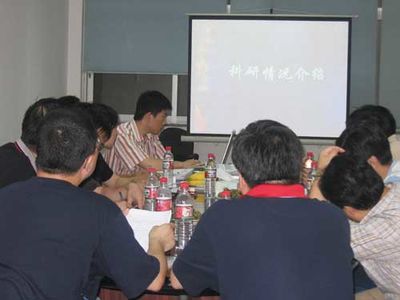 研究所所長周國忠博士正在介紹企業現有的科研技術情況
