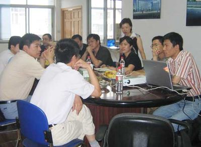 總經理助理兼項目部經理劉潔(右三)正在主持考察會議