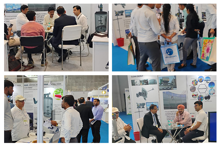 在展會期間,浙江長城的展位吸引了來自印度及周邊國家的眾多行業專家、企業代表和政府官員。公司展出的高效、節能、環保的攪拌設備,贏得了現場訪客的一致好評。印度代表詳細介紹了公司產品的技術優勢和應用案例,展示了長城攪拌設備在生物能源領域的廣泛應用。